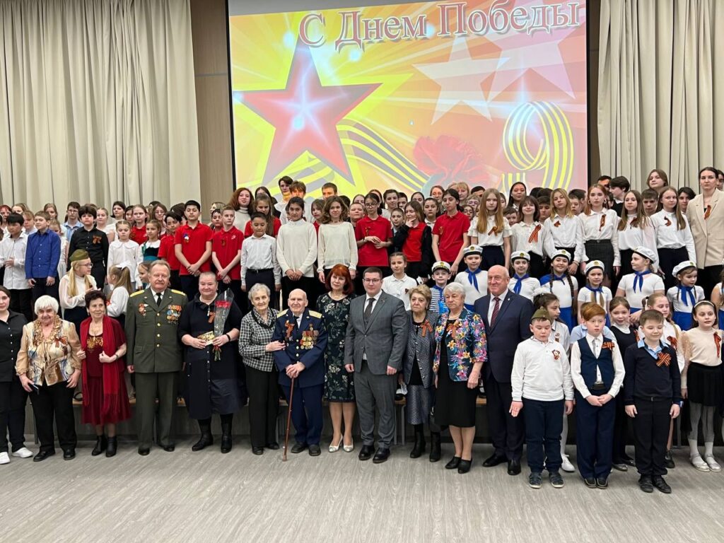 Марк Константинович лично поздравил всех присутствующих участников мероприятия с 77-й годовщиной Победы и вручил директору школы Тамаре Волошиной памятный подарок от Московской областной Думы.